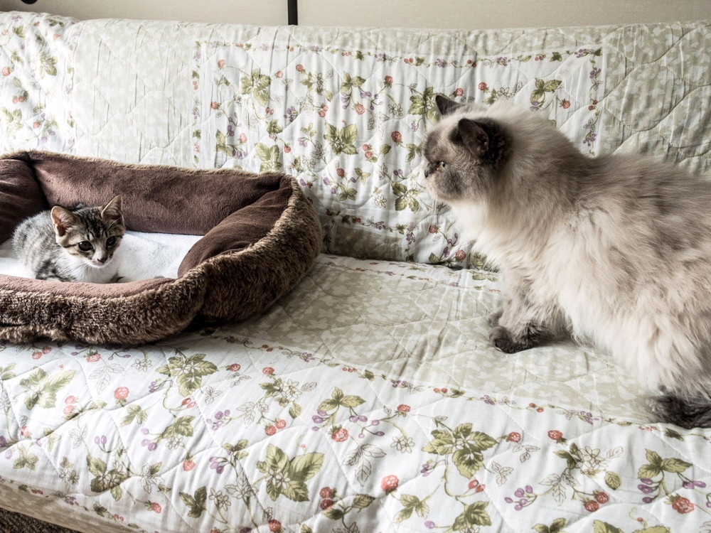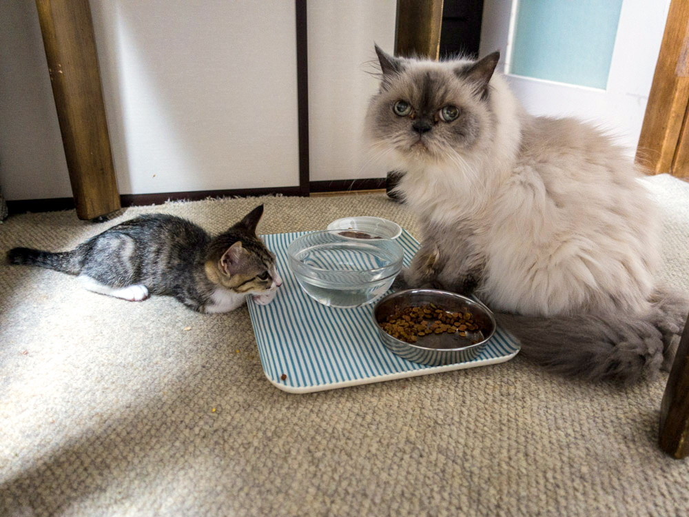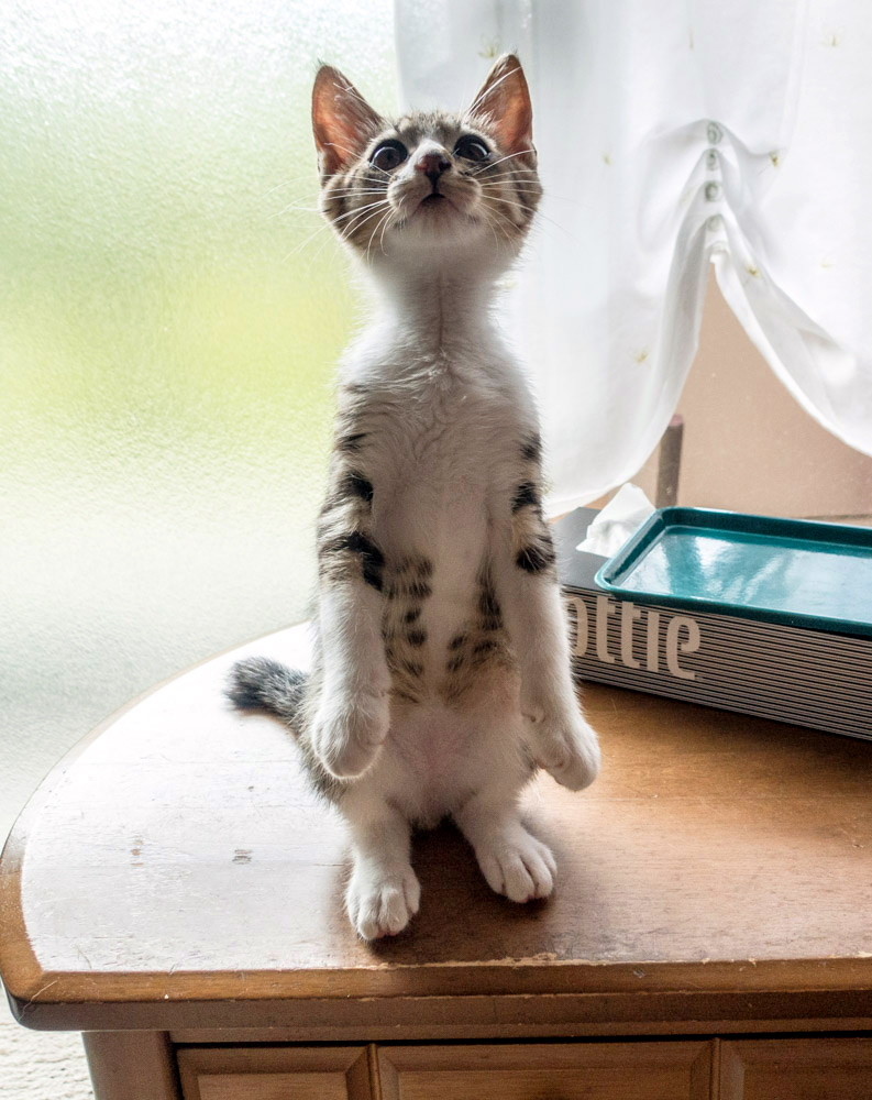 美斗くんと里飛ちゃん(3) 2015年08月14日 暑い最中、外出せずに愛猫の相手をしています。美斗ちゃんが棒立ちをしてくれました。なかなか・・・愛嬌のある子猫になって来ました。里飛(りと)ちゃんがやって来ました。年齢差・・・15年3ヶ月もありますが・・・リトちゃんの前での・・・この姿やがて、リトちゃんが食事と水飲みに・・・・そしたら、起きだして後を追いかけて・・・籠の中を入ったり・・・出たりして・・・適度に遊んでいます。やはり、子猫の美斗くんは行動範囲が広くなって来ました。オス猫だけに活発なんでしょう。 「愛猫」カテゴリの最新記事 < 前の記事次の記事 > コメント コメント一覧 (1) 1. shin9n 2015年08月14日 17:43 今日は少し外出して、すぐに帰宅。 高校野球を観戦・・・やはり相手は強かった。 2回戦で敗退でした。 後は、愛猫と遊んでいました。 気の遠くなるような気怠い一日になっています。 早く、鉄道旅したいなあ。 コメントフォーム 名前 コメント 評価する リセット リセット 顔 星 投稿する 情報を記憶